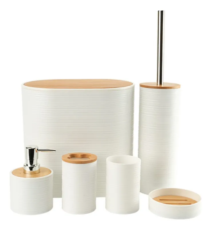 Set Baño Accesorios Juego 6 Piezas Bambu 5003 Blanco