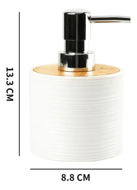 Set de baño SG 5003 de 6 piezas con terminación en bambú. Incluye cesto, escobilla, dispenser, jabonera, portacepillos y vaso. Fabricado en ABS premium reforzado. Diseño elegante, resistente y funcional. Disponible en 3 colores.